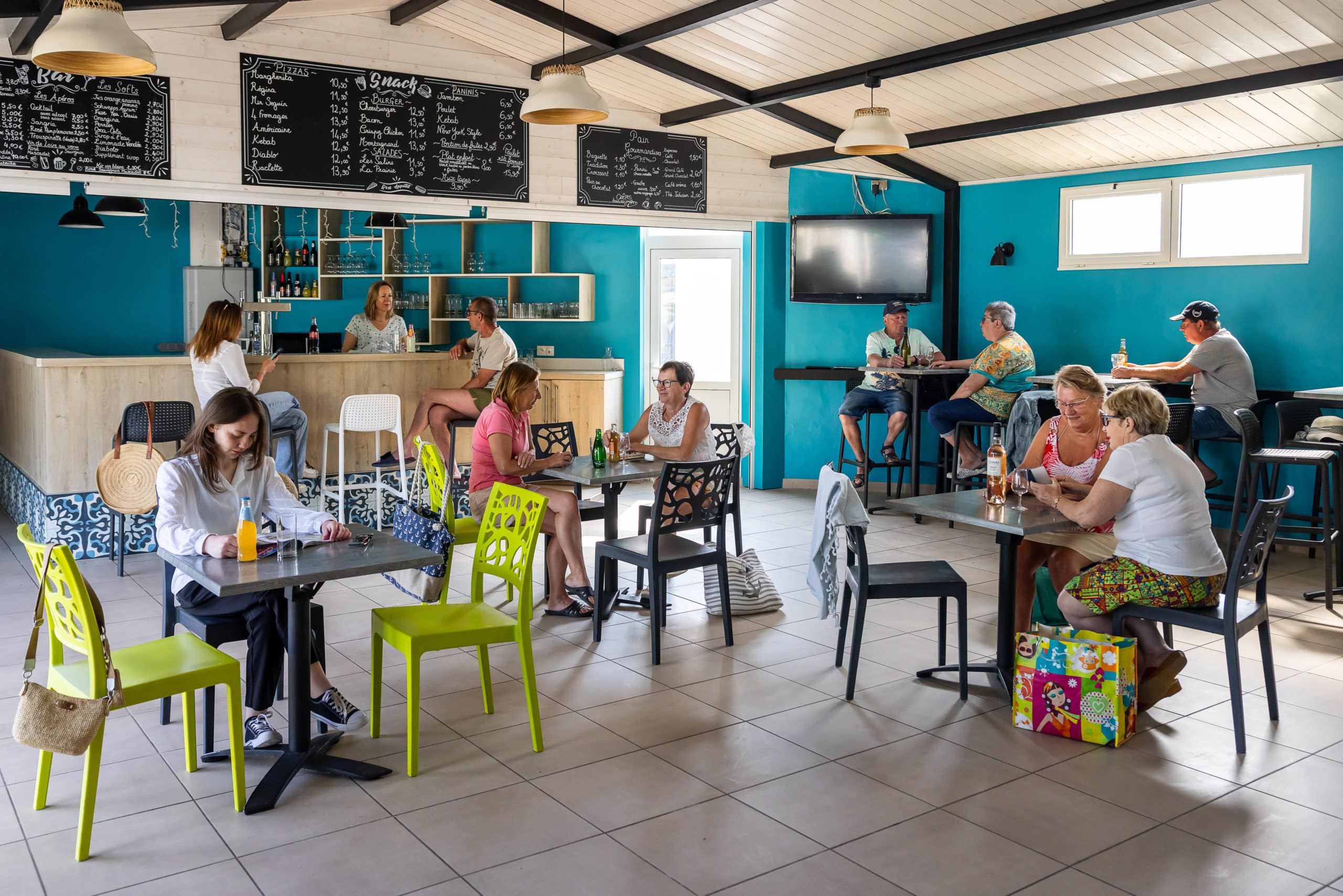 Moet je je dorst lessen? Een pauze inlassen? De snackbar van Domaine des Salins, onze 4-sterrencamping in Saint Hilaire de Riez, is elke dag geopend in juli en augustus en op feestdagen (Hemelvaart en Pinksteren).